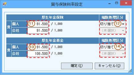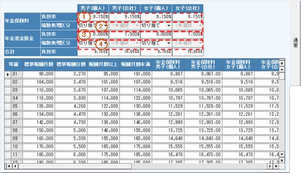 3.厚生年金基金に加入している場合、料率を入力します。個人負担、会社負担それぞれに入力します。