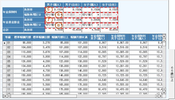 7.65歳以上の厚生年金基金の料率を入力します。個人負担、会社負担それぞれに入力します。