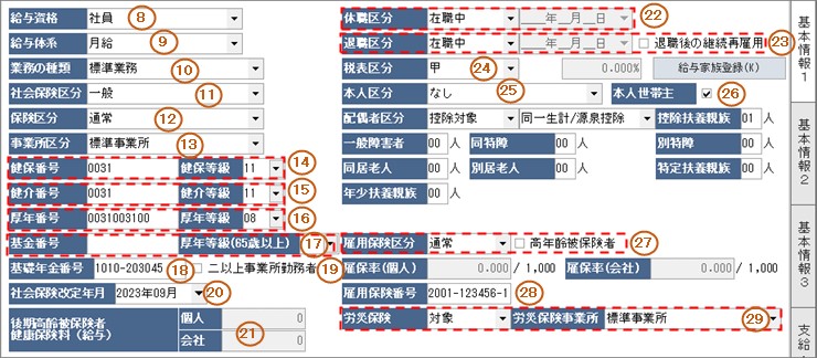 21.社会保険区分が「後期高齢被保険者」の場合、給与にて徴収・会社負担する健康保険料を入力します。