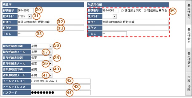 43.給与明細書、賞与明細書、源泉徴収票は2通、送信できます。別のアドレスにも送信する場合、入力します。