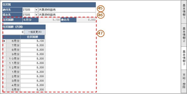〔計算基本情報設定〕住民税計算区分が「月別」の場合、各月ごとに入力できます。