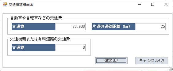 確定ボタンクリックすると、交通費詳細画面が終了し、〔給与マスタ登録〕の固定交通費に非課税額と課税