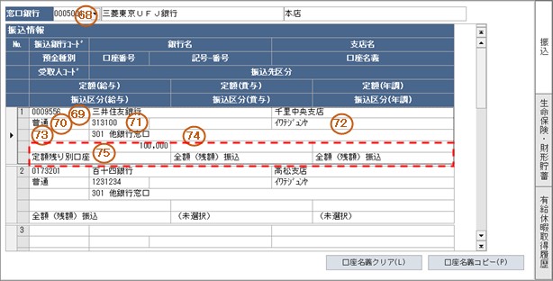 69.振込先の銀行コードと支店コードを入力します。必須項目です。