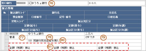 76.振込元のゆうちょ銀行の銀行コードと支店コードを入力します。必須項目です。
