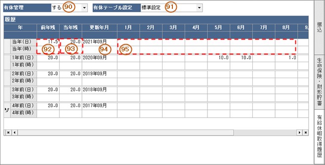 94.更新年月を入力します。有給休暇を管理する場合、必須項目です。