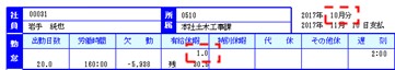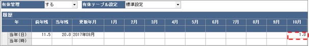 例)2017年10月の給与明細書で印字した有給休暇の取得日数は、10月の欄に入力します。