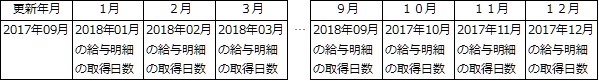 例)更新年月が2017年9月の場合、2017年10月~2018年9月の取得日数を入力します。