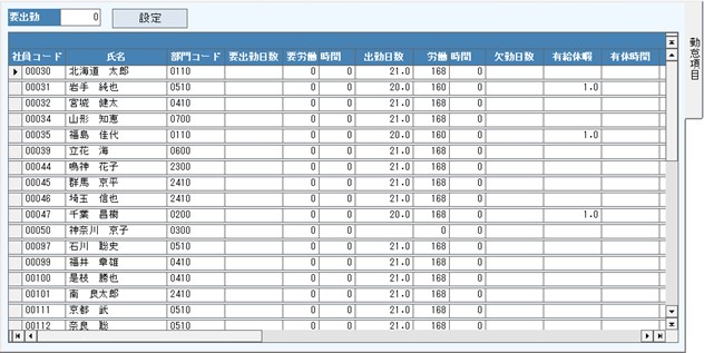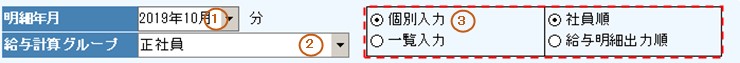 「個別入力」は、社員毎に入力する画面になります。