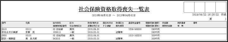 帳票種別で[部門順社員コード順][社員コード順][取得/喪失日付順]を選択した場合