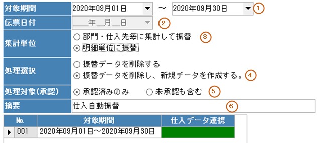 「承認済のみ」の場合、承認済の仕入伝票のみ処理されます。