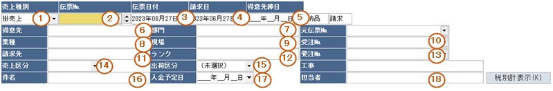 4.請求日を入力します。伝票日付が初期表示されます。必須項目です。