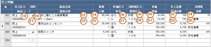消費税…各明細、又は全体の消費税。在庫反映なし。