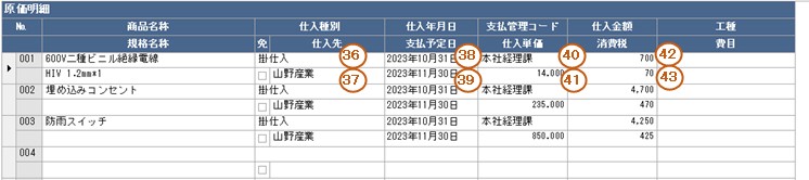 38.仕入年月日を入力します。伝票日付が初期表示されます。必須項目です。