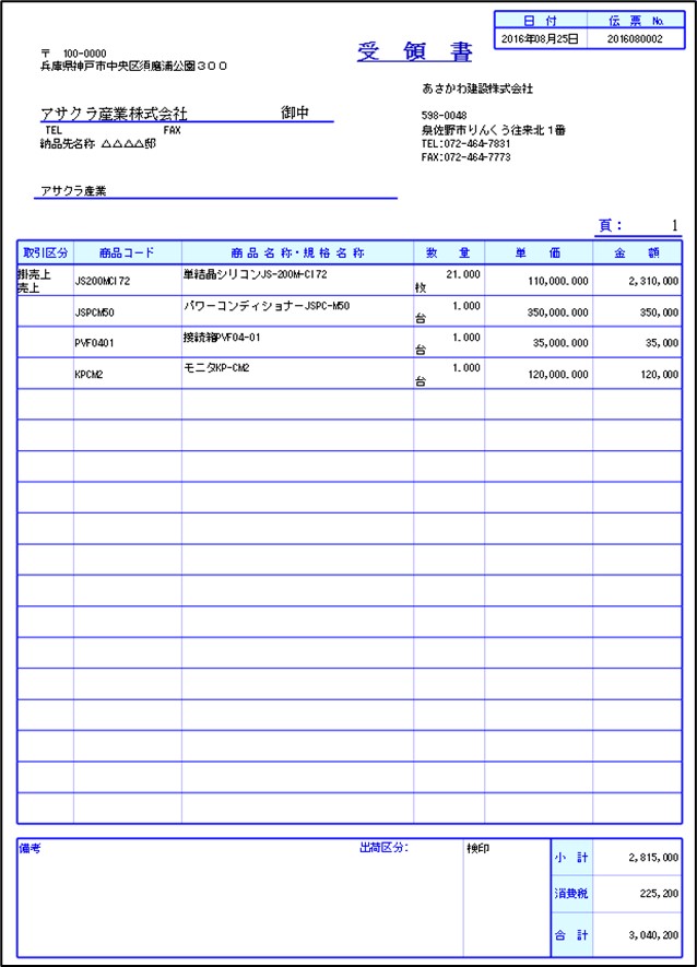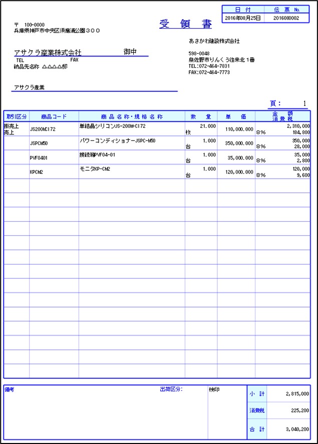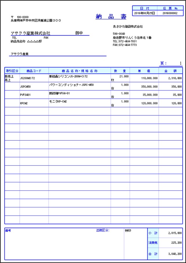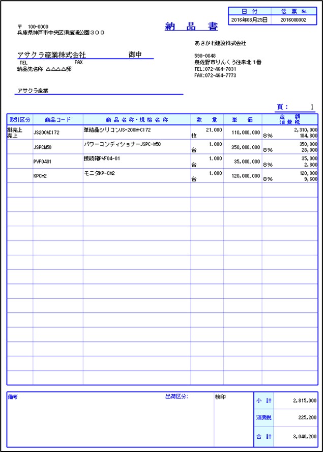 売上・出荷に対する、納品書・受領書・請求書を発行します。