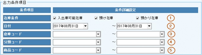 集計対象とする在庫情報において、対象とする倉庫コードの範囲を入力します。