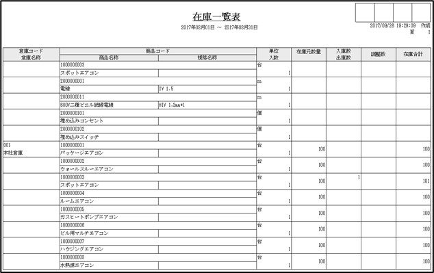 集計対象とする在庫情報において、対象とする商品コードの範囲を入力します。