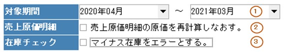 3.対象期間内の在庫がマイナスの時、エラーとする場合、選択します。
