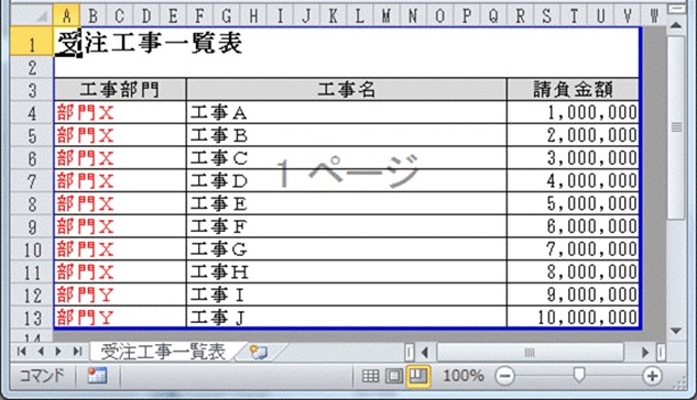 自由集計帳票作成システムでは、エクセル出力時の改頁制御をすることが可能です。