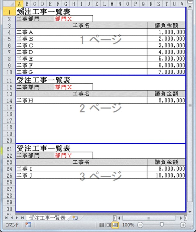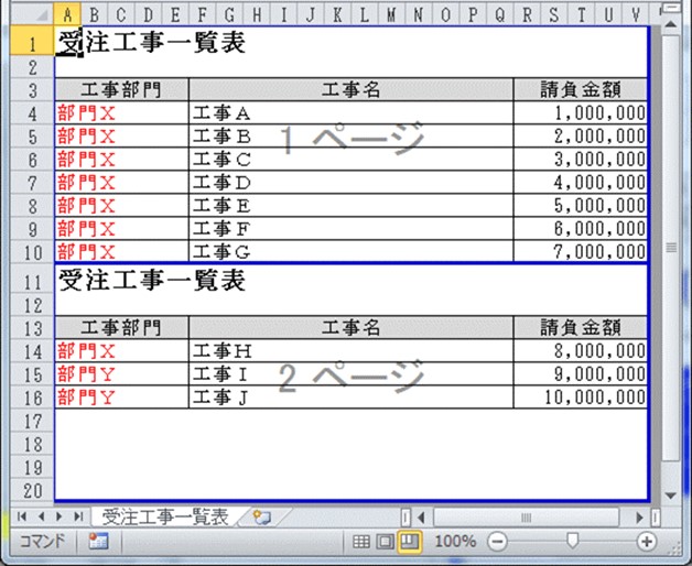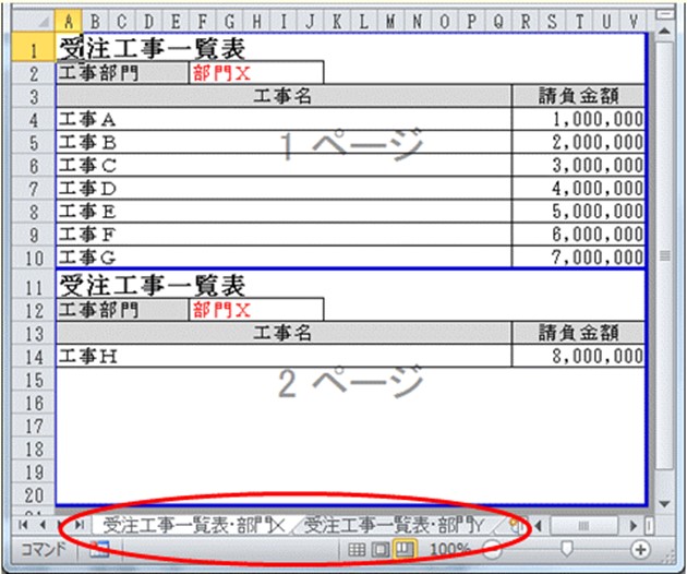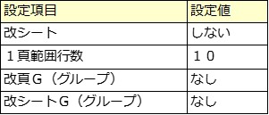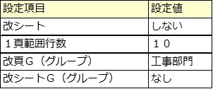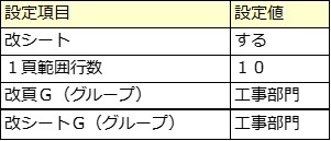 以下の設定例を参考に、改頁・改シート設定を行ってください。