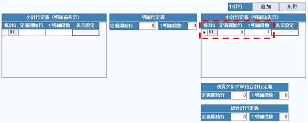 小計行定義欄にエクセルテンプレートの明細行を指定します。