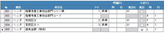 各項目の出力位置は、明細行欄ではなく、小計行欄で指定します。
