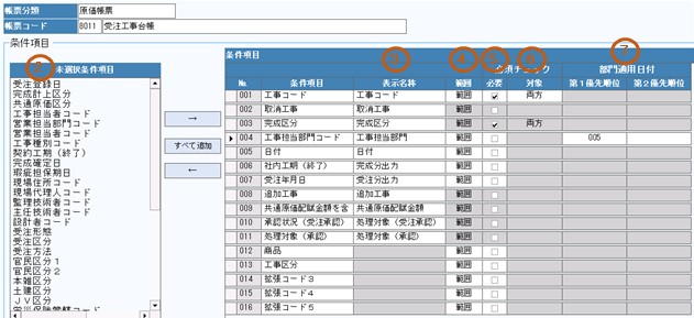 1.出力条件項目設定ボタンをクリックすると、出力条件項目設定画面が表示されます。