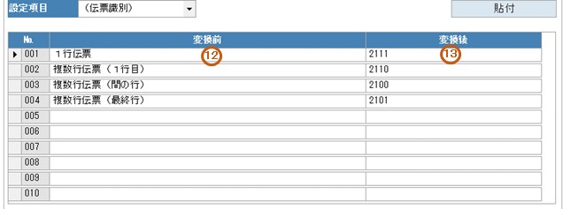 変換前に指定した伝票データに該当する場合、変換後の値が出力されます。