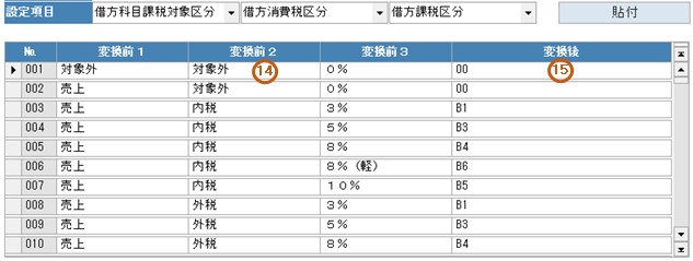 ※変換の対象になる設定項目の値が、変換前の一覧にない場合は、変換されずそのままの