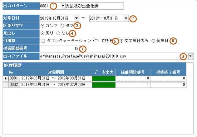 7.自動採番の設定にて、「採番開始番号を指定する」を選択している場合、出力するファイル