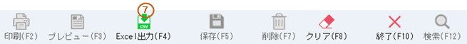 7.ツールバーのExcel出力ボタン又はF4ボタンを押します。