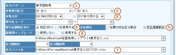 支払実績割合:取引先毎の支払集計結果の手形支払額、現金支払額の割合から、該当する