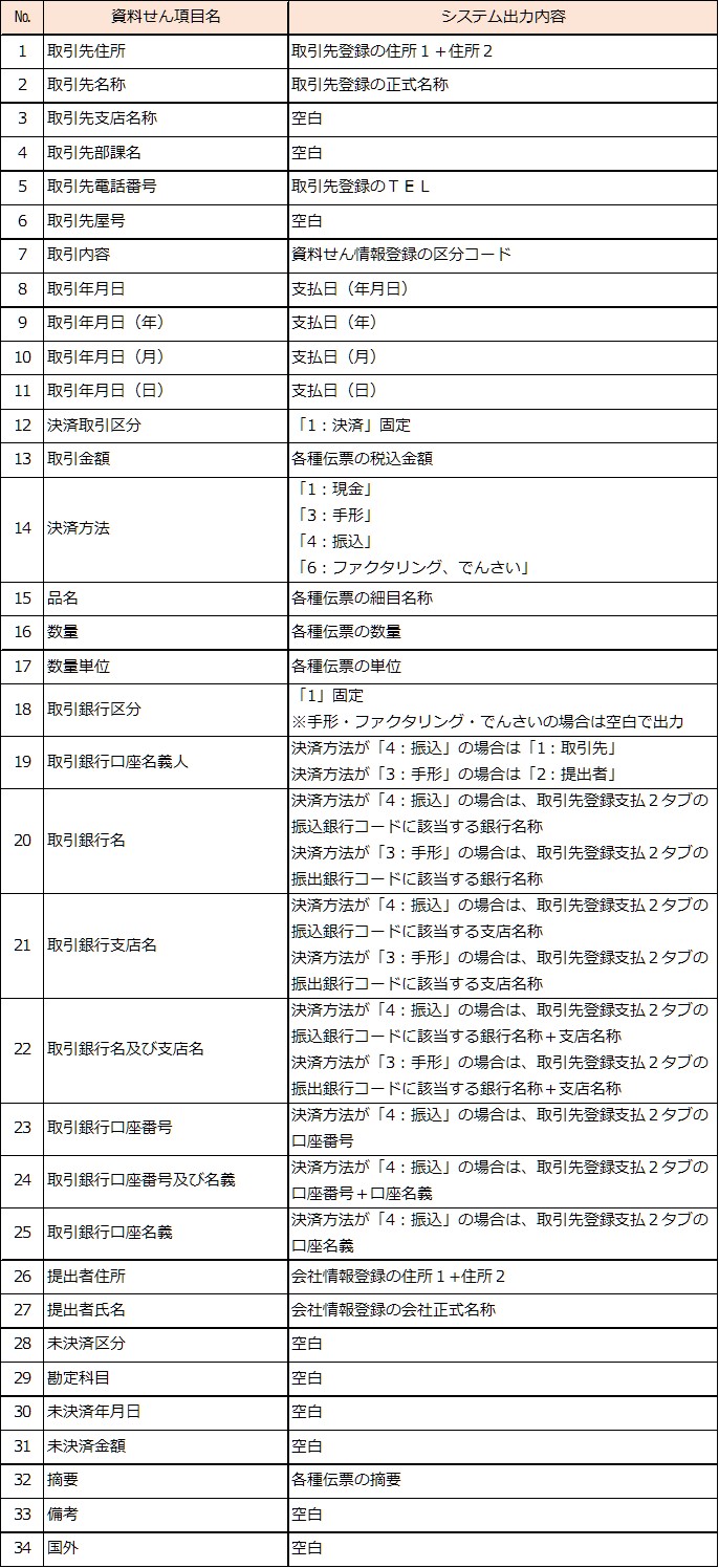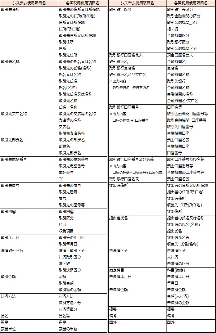 資料せんの出力項目には、各12国税局で項目名は異なるが出力内容は同じといった項目が多くあります。
