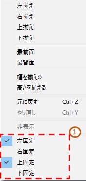 ②右クリックし、用途に応じて「左固定、右固定、上固定、下固定」のいずれかを選択します。