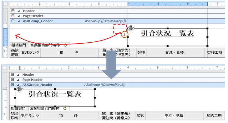 2.境界線上のマーカーをドラッグ&ドロップして項目の大きさを変更します。