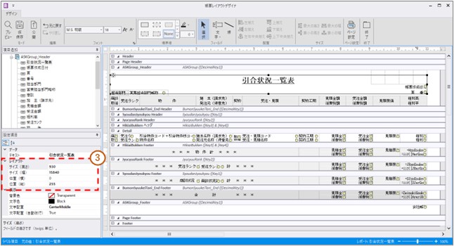 3.項目を選択し、設定項目ウィンドウで数値入力して位置や大きさを調整します。