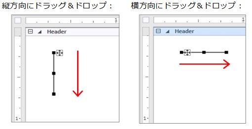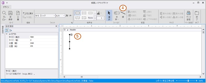 5.デザイナ上で項目を配置したい場所をクリックすると、縦線が配置されます。