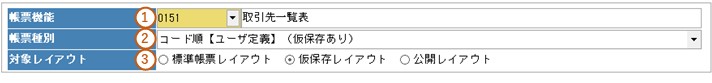 2.帳票種別名の後に「【ユーザ定義】」又は「(仮保存あり)」と表示されている帳票種別を選択します。