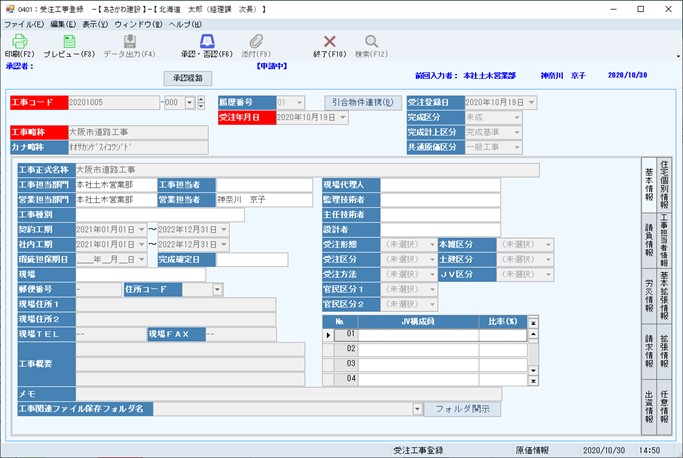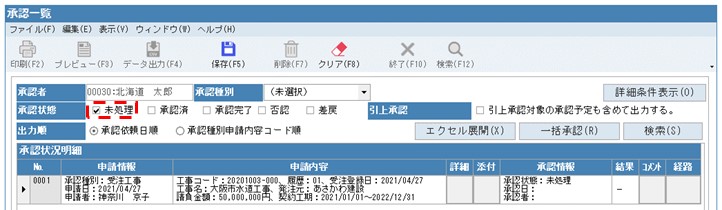 ※「承認日」は電子承認システム(1段階)を購入しているユーザのみ表示されます。