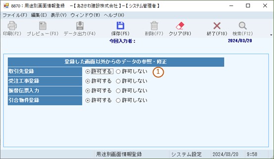 1.登録画面以外からのデータの参照・修正の許可を選択します。