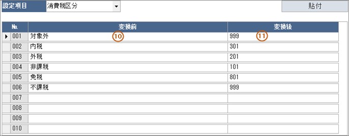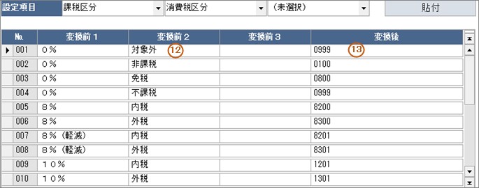 ※変換の対象になる設定項目の値が、変換前の一覧にない場合は、変換されずそのままの