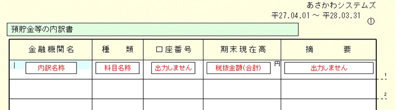 預貯金等の内訳書
