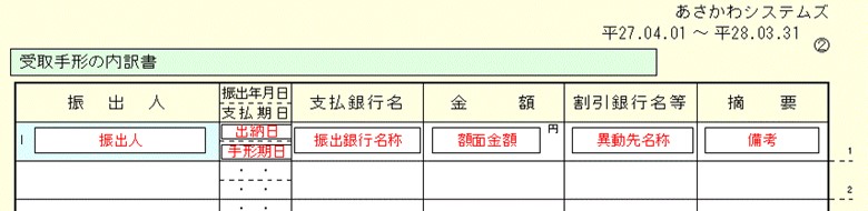 受取手形の内訳書