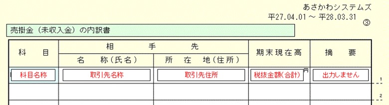 売掛金の内訳書