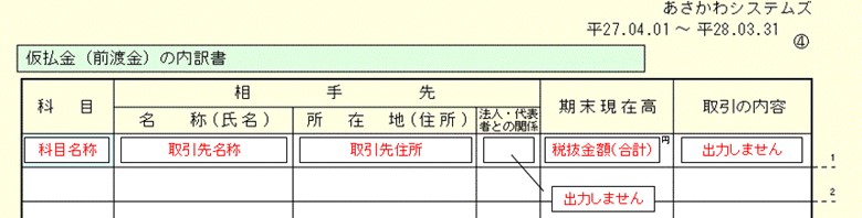 仮払金の内訳書