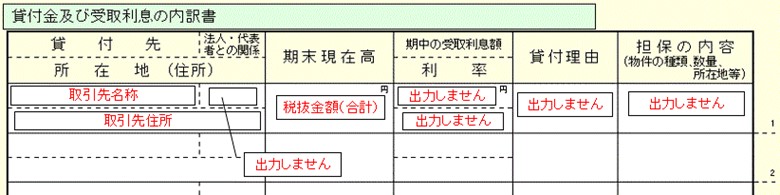 貸付金及び受取利息の内訳書
