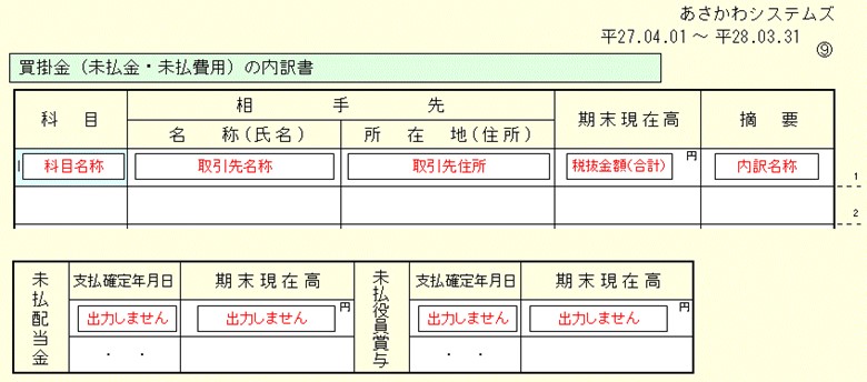 買掛金の内訳書