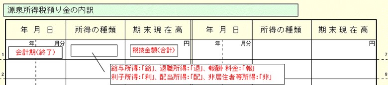 源泉所得税預り金の内訳書