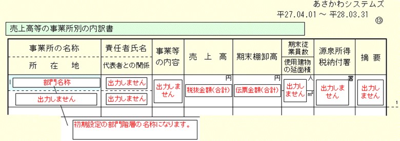 売上高等の事業所別の内訳書