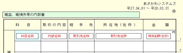雑益、雑損失等の内訳書