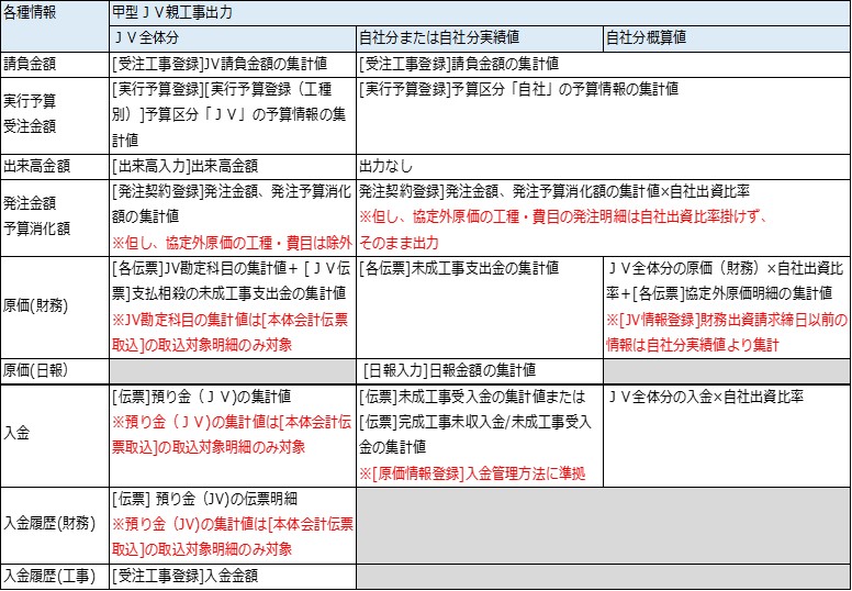 出力条件項目の「甲型JV親工事出力」により選択可能です。